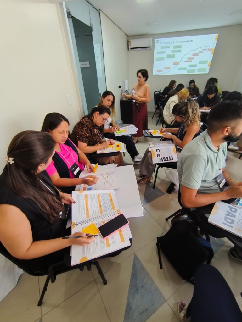 Eles participam, na sede do Sindicato, do curso “Interpretação da Norma Padi – Versão 6 + Formação de Auditor Interno”, promovido em parceria com o Colégio Brasileiro de Radiologia (CBR) e ministrado pelas consultoras e auditoras do Padi, Ana Paula Oliveira Rangel e Melissa da Cunha Peixoto.